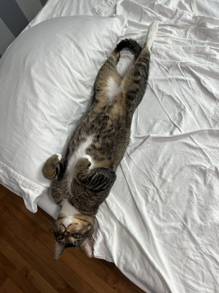 From their foster family: “Ollie is an absolutely charming mature brown tabby, estimated 5+ years. FIV+ but healthy. He was taken in as an outside cat by a church, with no idea where it was he originally came from. But he is so, so sociable and friendly that we assume he was abandoned as an adult. His mellowness is legendary. His belly is absolutely not a trap! He loves being petted there as well as basically everywhere else. He is absolutely a snuggler and will gladly curl up with humans whenever given the opportunity. His best friend is Freddie, who was also taken in by the church as a kitten, and who immediately gravitated to Ollie as a big brother.”
